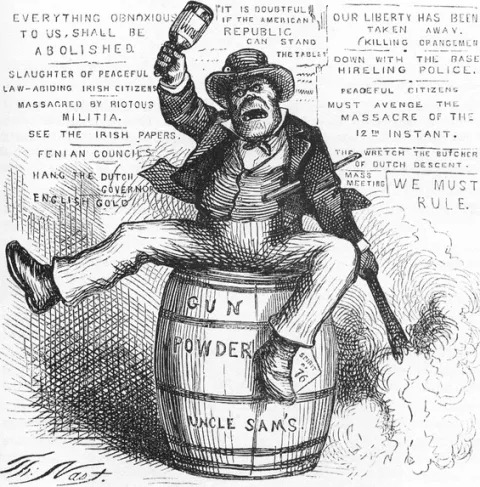 While this experience is hardly unique to Hibernians and their progeny, there is a uniquely Irish variety. Because Irish names and faces are so commonplace in America, it may seem remarkable to some that even as recently as the last century, Irish people were subject to racism. Familiar illustrators of the day including Thomas Nast, who drew the world’s most-recognized image of Santa Claus, and John Tenniel who drew Alice, portrayed the Irish as simian and sub-human, prone to Papist superstition, drunkenness, and violence.
